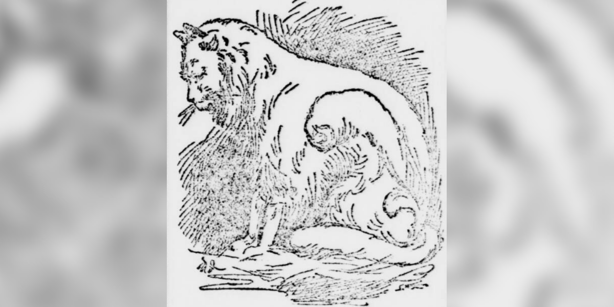 “Its tail commences like a cat’s but ends something like that of a fox. The greatest curiosity about it is that on each side of the upper part of its back, there is a wing composed of skin or fleshy substance and covered with the same kind of fur as its body.